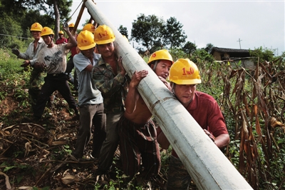 “进村的路又陡又窄,根本无法运送材料。”廖发云等人徒步2个多小时先行进村探路,经请示后雇来一辆装载机,临时推出一条供汽车运送材料的路。不料此时正值雨季,半途中车轮陷入湿泥路里,动弹不得,急坏了在场的施工人员。“我永远忘不了那一幕,全村男女老少得知我们是来通电的,冒着雨帮我们一起把车一步步推出泥泞。”